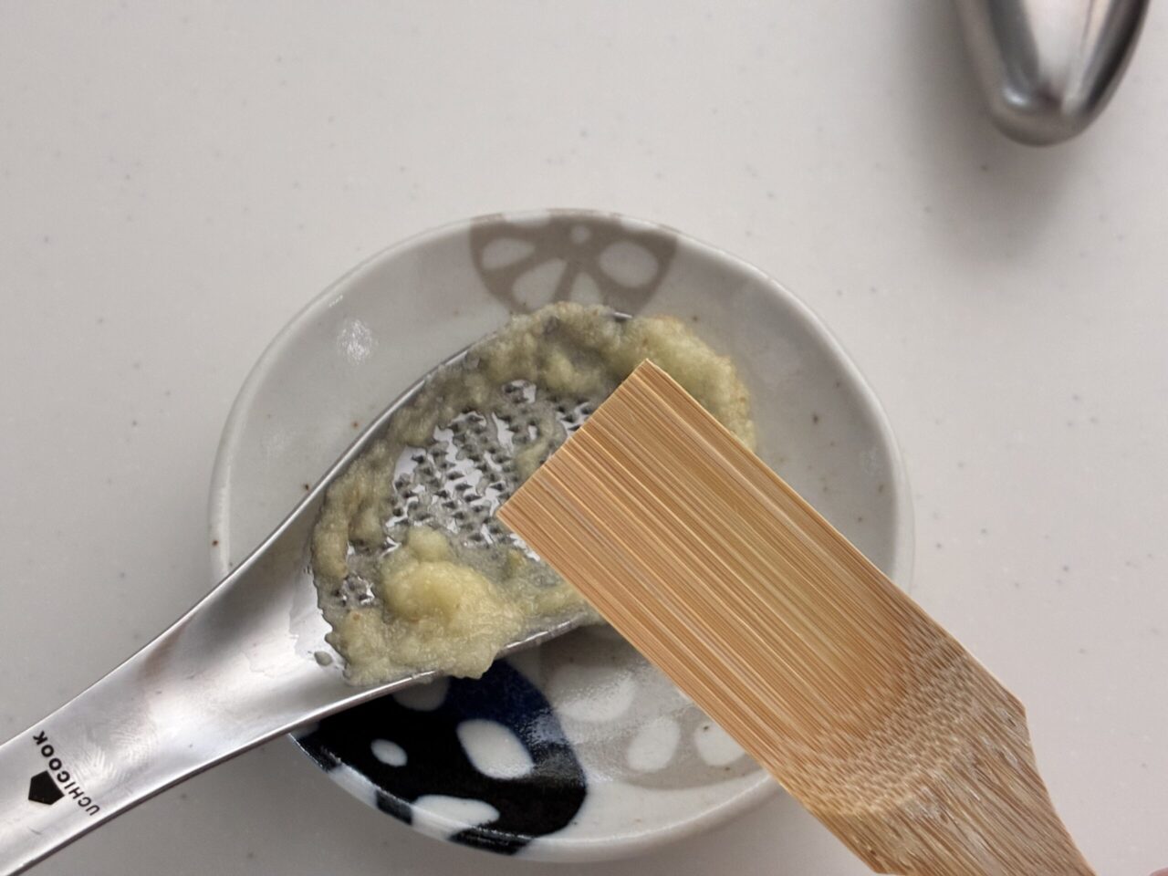 にんにくや生姜をおろしたとき、おろし金に残った部分を寄せるためのはけ。妻からは「そんなの要る?」と言われましたが、個人的に一番買ってよかったと思っています。