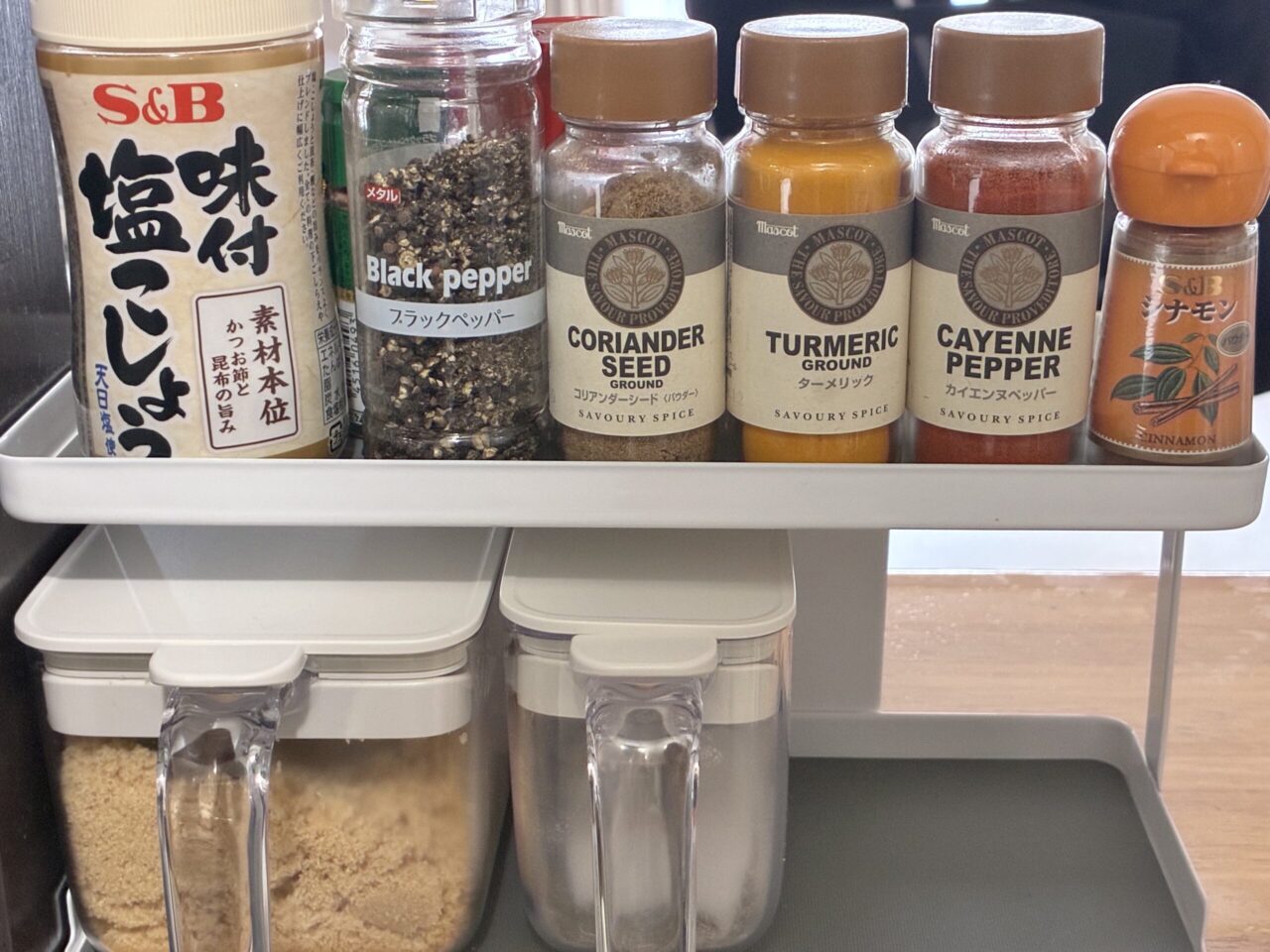 スパイスにハマった影響で、調味料周りの収納が乱雑になってきたので、購入しました。