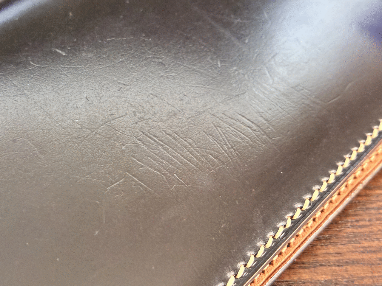 大人ぶって買ったコードバンの革財布と7年分のキズ