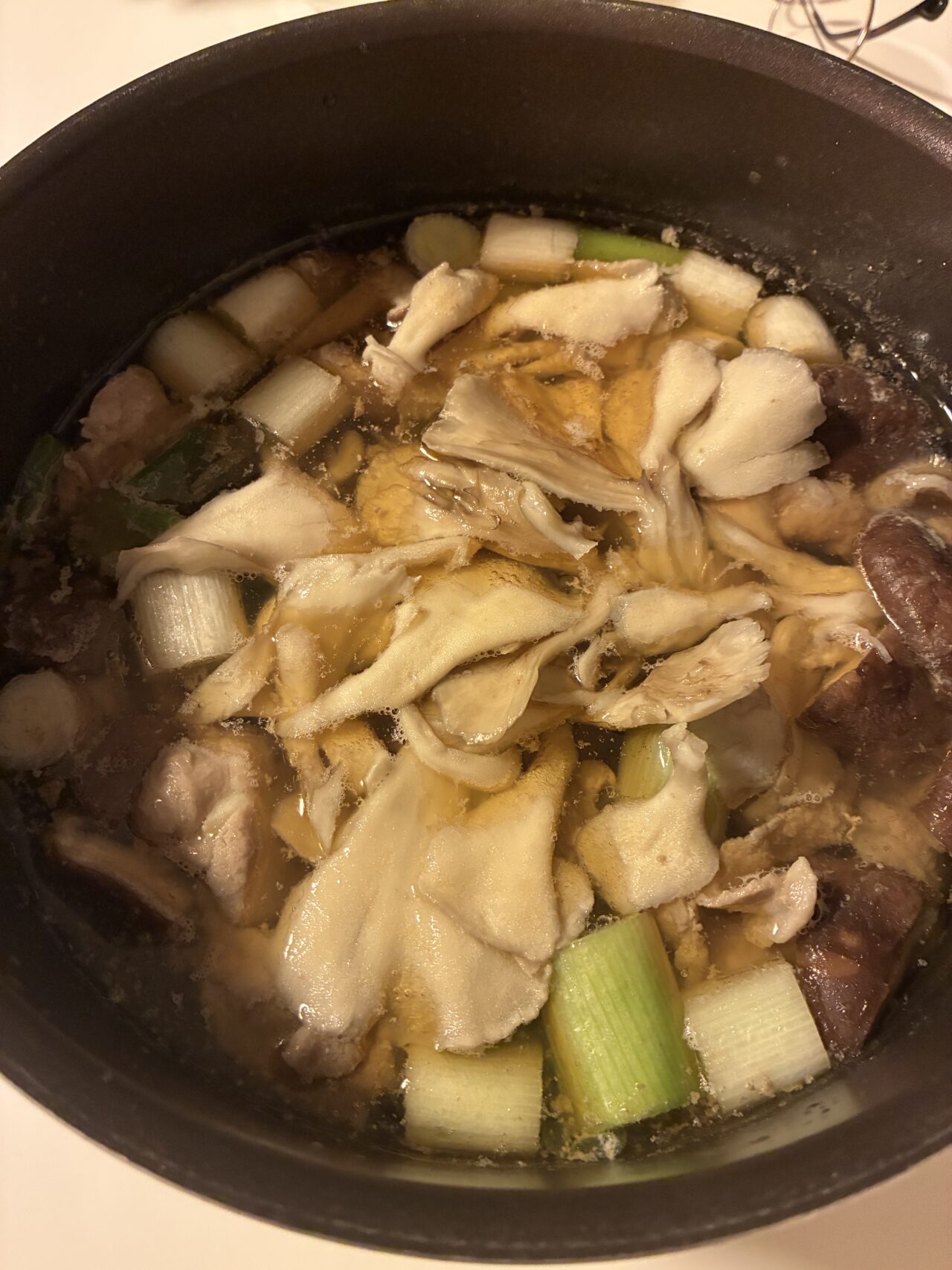 鶏もも肉とネギのシンプルな鍋から始まり、最近ではもつ鍋っぽくしてみたり、手羽先を使った水炊き、きのこをたっぷりにしてみたり、ピエンロー鍋を作ったりもした。