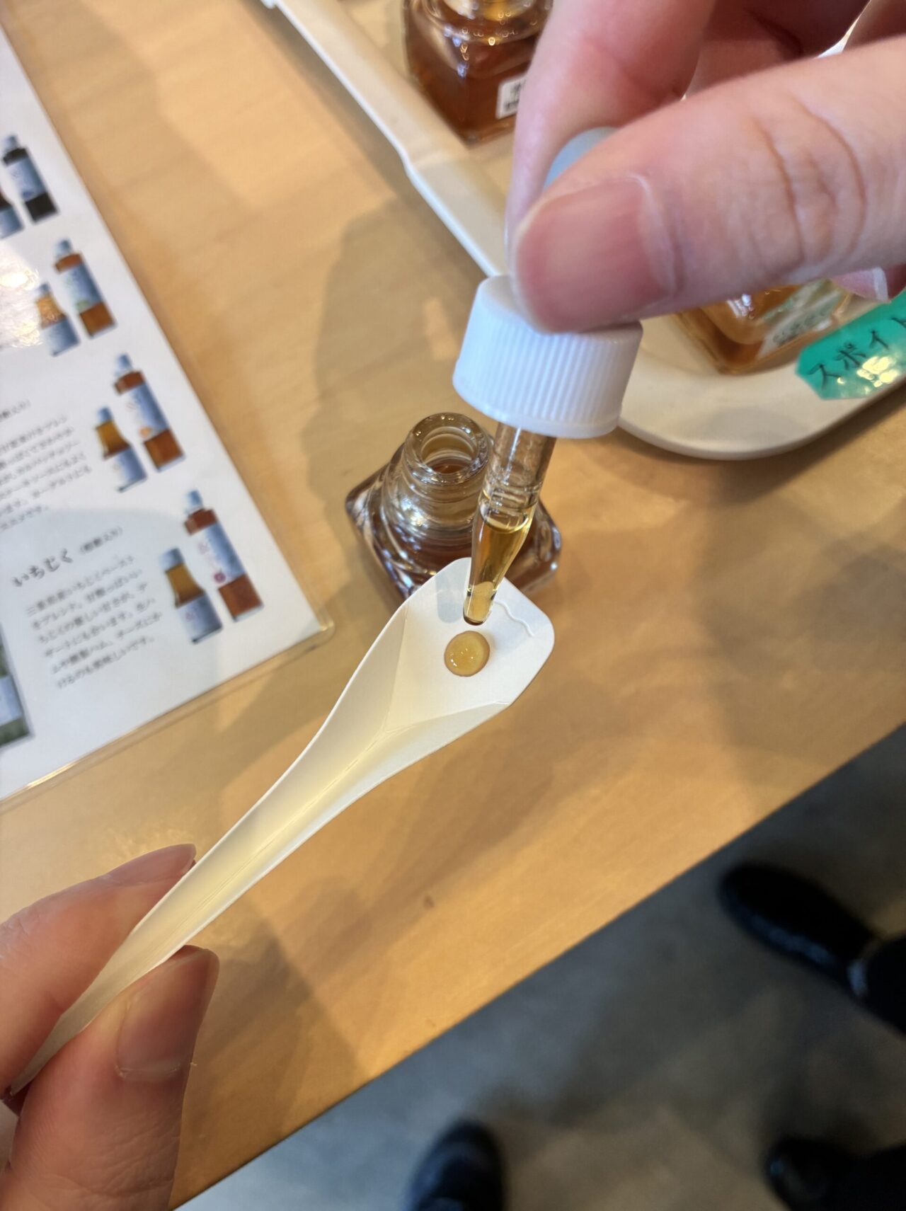 今回は比較的クセが少なく、普段の料理にも使いやすそうな「月下」を選びました。こういった「試して選べる買い物」は、現地ならではの良さですね。