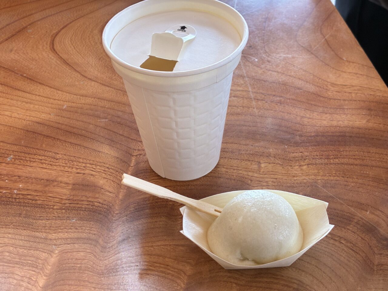 酒々まんじゅうは、できたてでお酒の風味が強すぎず、ふわっと香るくらいの絶妙な塩梅です。甘酒もクセが少なくて飲みやすく、まんじゅうとの相性もよく感じました。