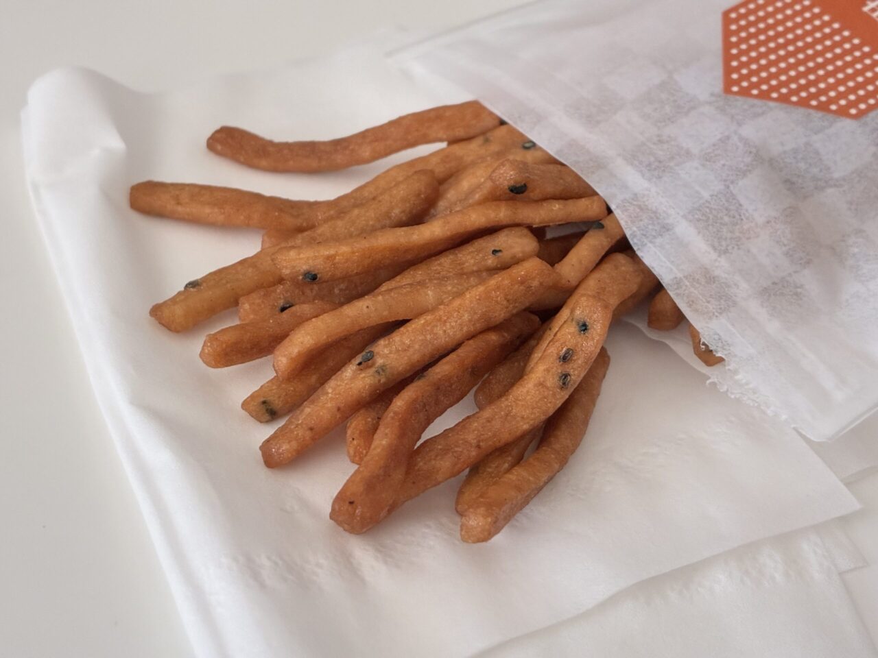 甘すぎず、しょっぱすぎず、気づくと無心でぽりぽり食べてしまいます。食べる手が止まらないお菓子で、次に行くことがあればまた買いたい一品です。